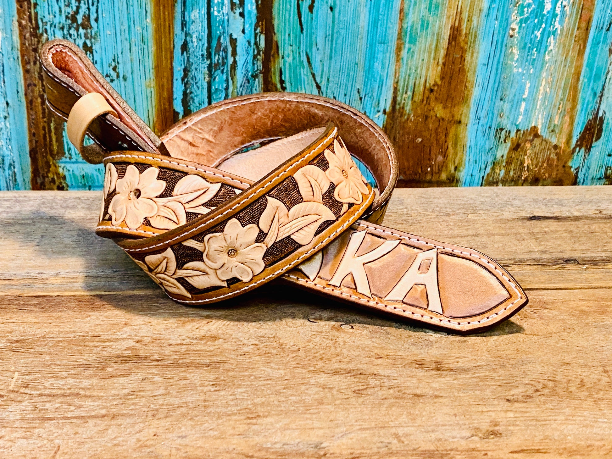 Custom made belt using premium quality leather and hand tooled designs. Once I receive your order I will message you with design options, we will work together on design, color and finishes to assure you get exactly what you want. Each belt is crafted entirely by hand from start to finish around 12-16 hours of work. It will take about 3–4 weeks before you get your finished product (time may vary)